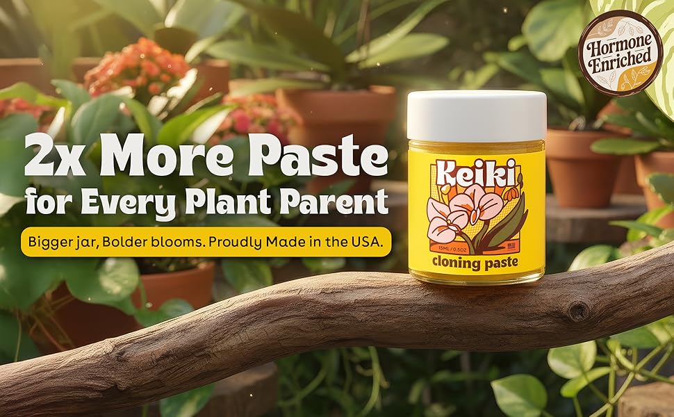 Keiki Paste is a nutrient-rich, water-resistant cloning gel designed to accelerate root growth and plant propagation. With 2X the paste in a 0.5oz jar, it supports over 100 nodes and works on a wide variety of houseplants beyond orchids. Made in the USA, it simplifies cloning with easy application and natural wooden applicators, delivering rapid, healthy new growth for your indoor garden.